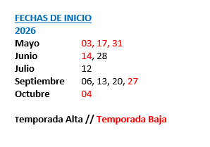 PRECIOS POR PERSONA EN EUROS